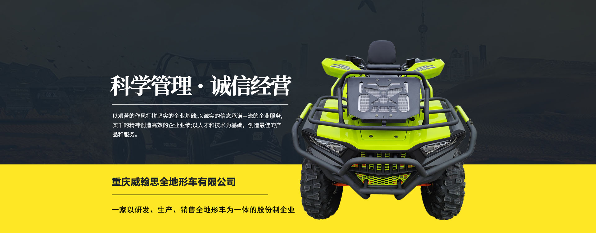 重慶威翰思全地形車有限公司成立于2016年9月,一家以研發、生產、銷售全地形車為一體的股份制企業。公司銷售額超過5000萬?,F有專業市場售后服務團隊。公司秉承“敬業、超越、活力、用戶至上”的企業精神,“以人為本,合作共贏;”的核心價值觀,“嚴格管理創優質、名牌戰略拓市場”的質量方針,使公司一步步邁上新的臺階。公司與重慶航天巴山摩托車制造公司達成戰略合作協議。共同出資致力于沙灘車旅游市場產品研發,項自運營指導,市場維護等全方位市場拓展。重慶航天巴山摩托車制造公司授權;重慶威翰思全地形車有限公司為中國區唯─戰略合作伙伴。
